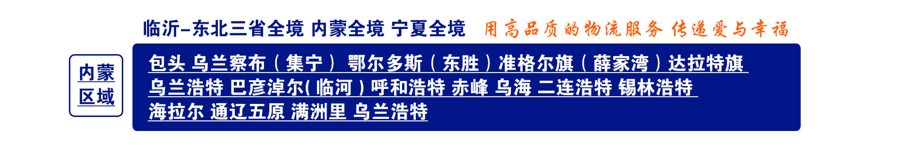 临沂⇌包头 乌兰察布(集宁) 鄂尔多斯(东胜)准格尔旗(薛家湾)达拉特旗 乌兰浩特 巴彦淖尔( 临河 ) 呼和浩特 赤峰 乌海 二连浩特 锡林浩特 海拉尔 通辽五原 满洲里 乌兰浩特